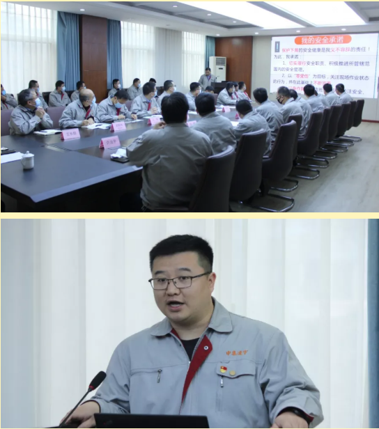 隨后,公司總經(jīng)理劉寶山為生產(chǎn)事業(yè)部頒發(fā)安全100點(diǎn)檢日歷,并與各部門(mén)長(zhǎng)簽訂2022年度HSE責(zé)任書(shū)。