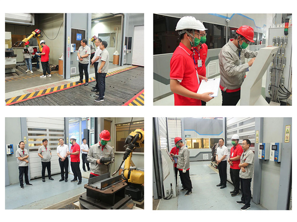 在攪拌車自動焊接線實操考試現(xiàn)場,選手們對機器人進行編程、設置參數,根據工件需要焊接的位置,反復調整機器人的運動軌跡,力求做到焊接時的準確度。裁判員們根據程序編寫、焊接效率、焊接位置、焊縫完整度等指標進行評判。賈主席一行在考試工位前駐足,不時詢問設備運行情況,詳細了解選手們操作流程,對大家精彩表現(xiàn)表示肯定。