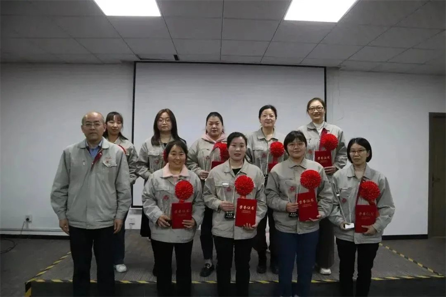 公司工會主席趙新偉宣讀表彰文件,為9名受表彰的三八紅旗手頒發(fā)榮譽(yù)。