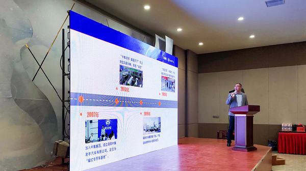 隨后,中集凌宇保定區(qū)域經(jīng)理石曉鵬向來(lái)賓介紹了凌宇公司,以及“天啟工程”智能化生產(chǎn)線,并對(duì)攪拌車產(chǎn)品進(jìn)行了更深入的講解。